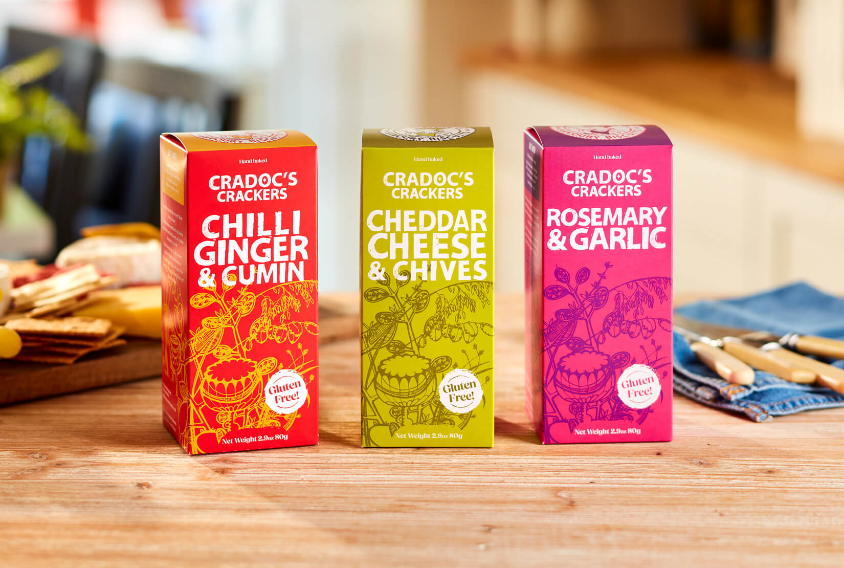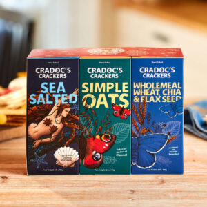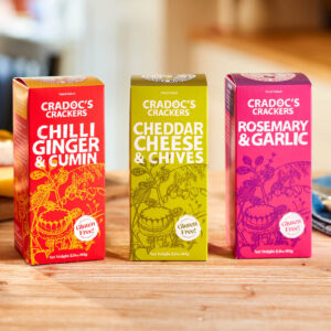 A pack each of Gluten-free Cheddar Cheese and Chives, Gluten-free Chilli, Ginger and Cumin, Gluten-free Rosemary and Garlic. Thoughtfully packaged together in a branded red and white snowflake band for Christmas and finished in recyclable polypropylene film. Butterfly Summer band available on request.